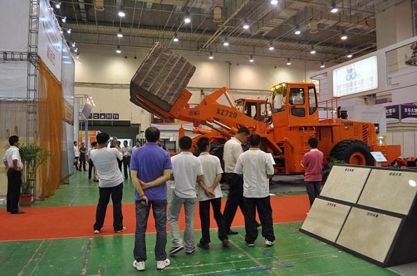 我司針對(duì)此次博覽會(huì)的專業(yè)性,特別組織了兩臺(tái)XZ720塊料鏟裝機(jī)參展。